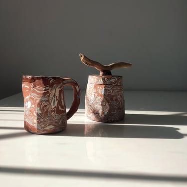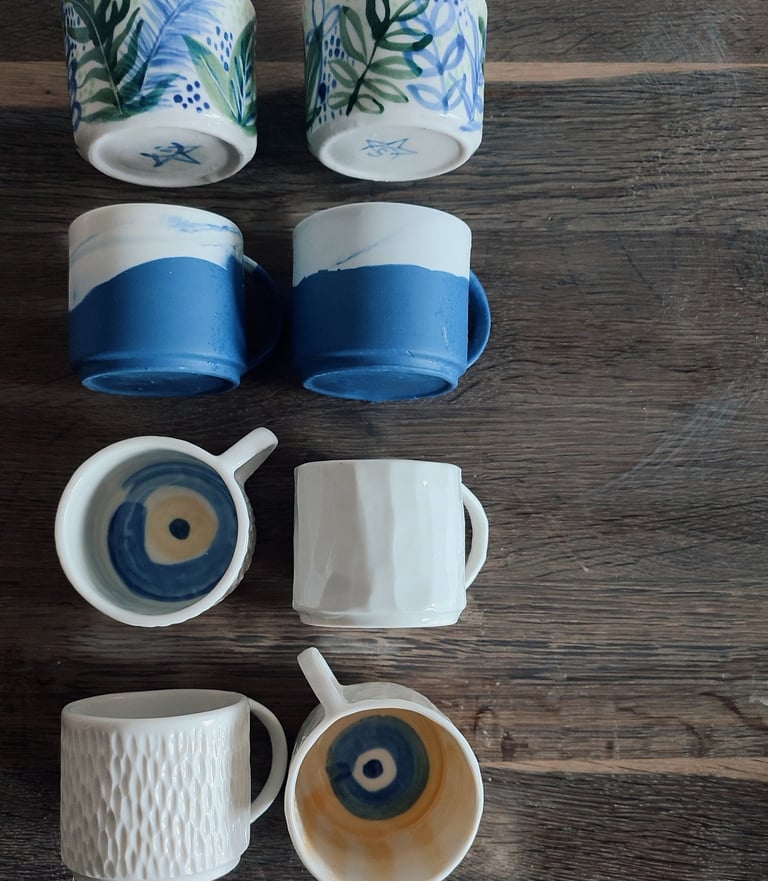 Wheel-thrown or slipcast techniques are used for a more consistent shape. Surface pattern methods such as sgraffito, handpainting, marbling, and carving, aswell as glazing techniques, allow for individuality on a repeated form.